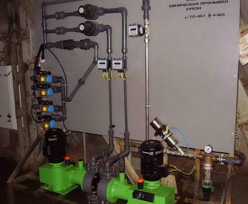 Были использованы дозировочные насосы DMH 1500-4 с частотным регулированием, контрольно-измерительные приборы "Burkert", емкости "Анион".